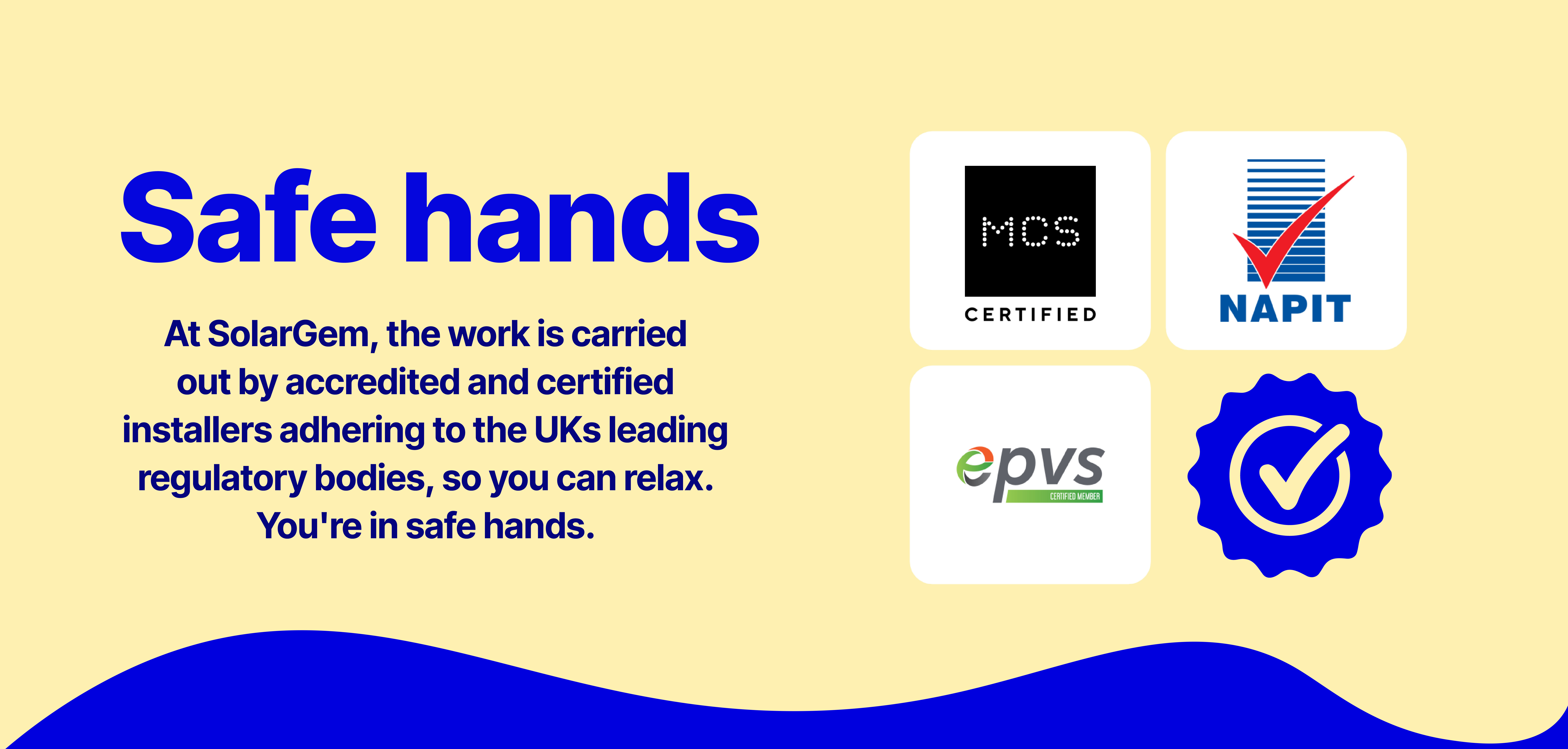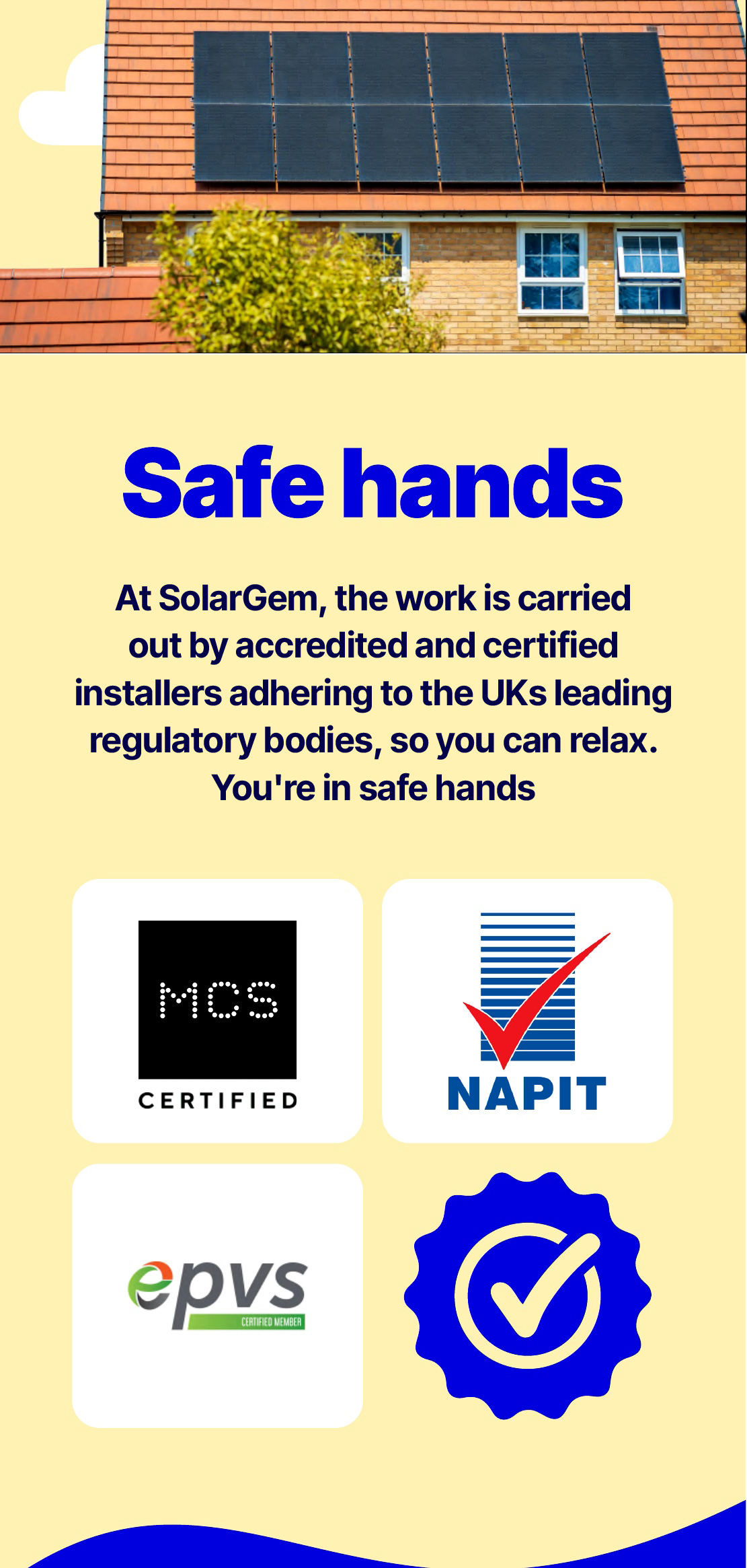At SolarGEM, we're fully accredited and certified by the UK's leading bodies, so you can relax, you're in safe hands.