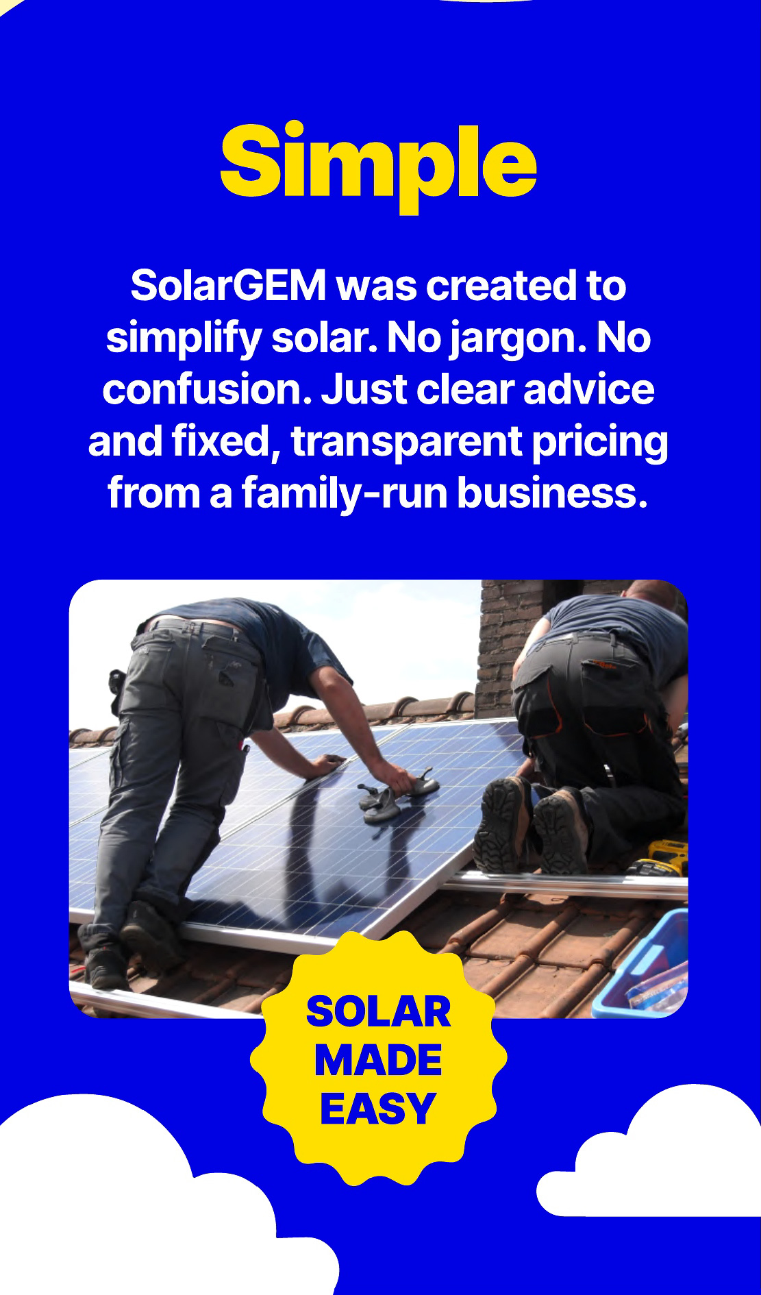 SolarGEM was created to simplify solar. No jargon. No confusion. Just clear advice and fixed, transparent pricing from a family-run business.