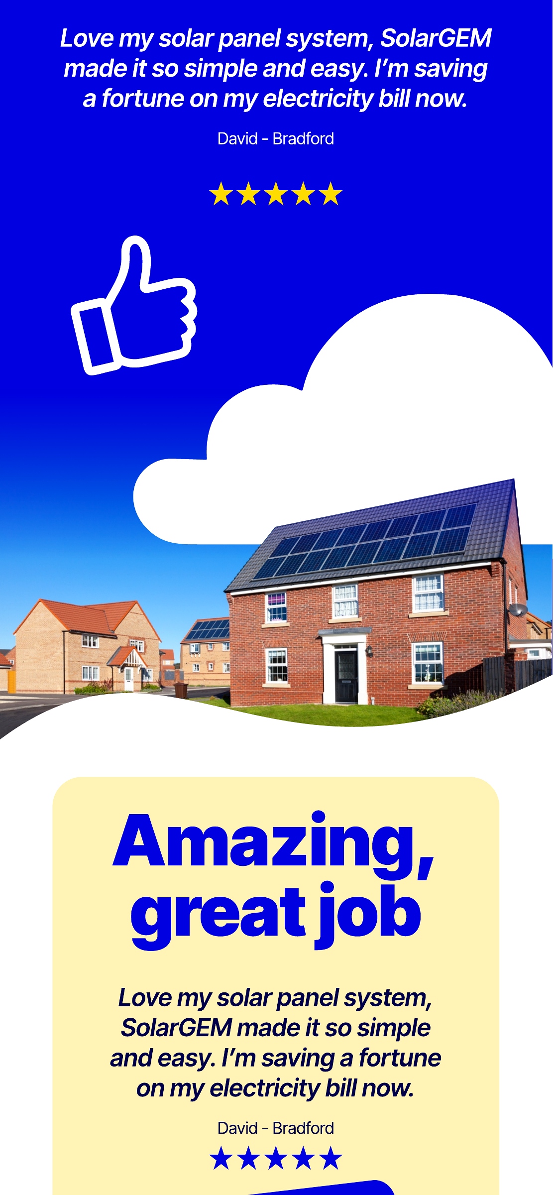 "Love my solar panel system, SolarGEM made it so simple and easy. I'm saving a fortune on my electricity bill now."
